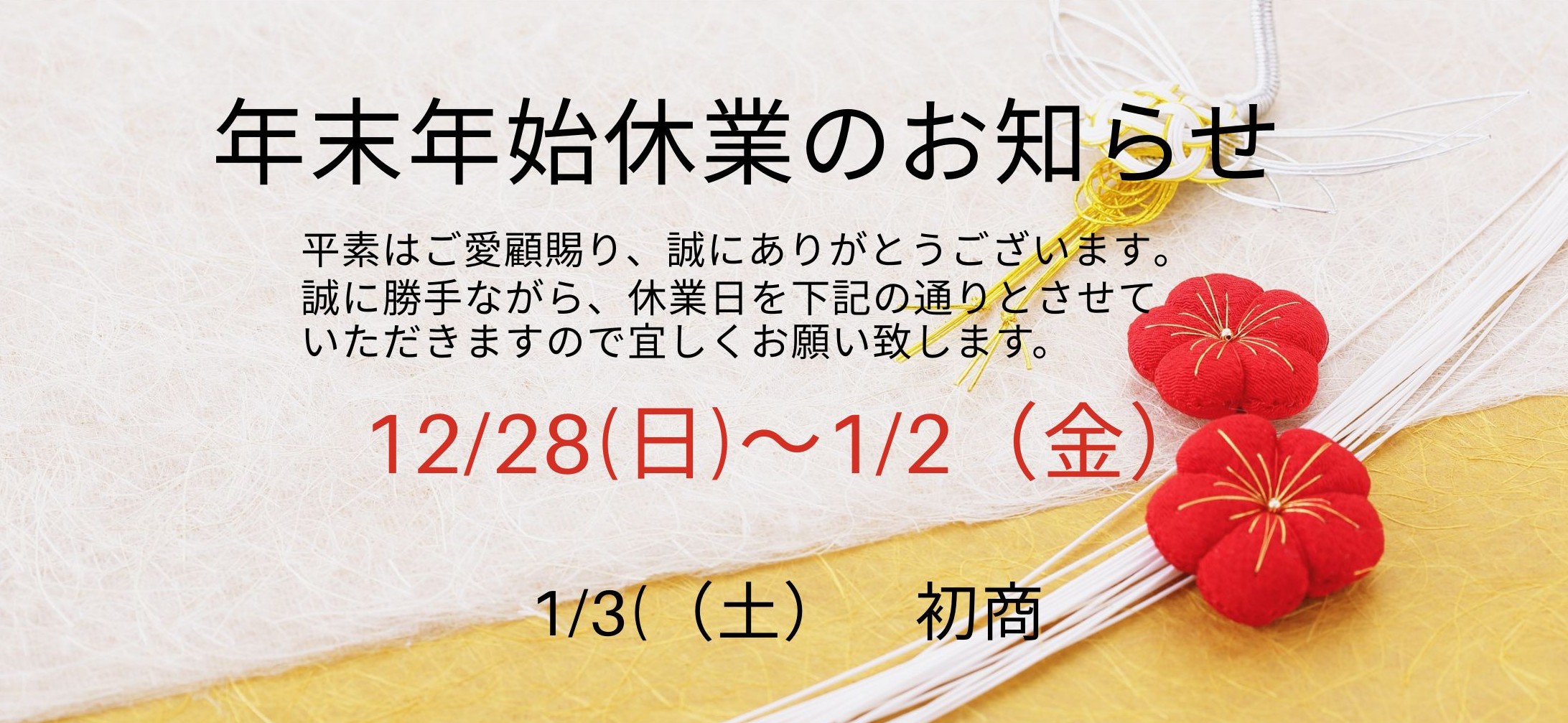 - 2025/12/22 《年末年始の営業について》12/28~1/2まで休業とさせていただきます。年始の営業は1/3(土)からになります。ご不便をおかけしますが宜しくお願い致します。