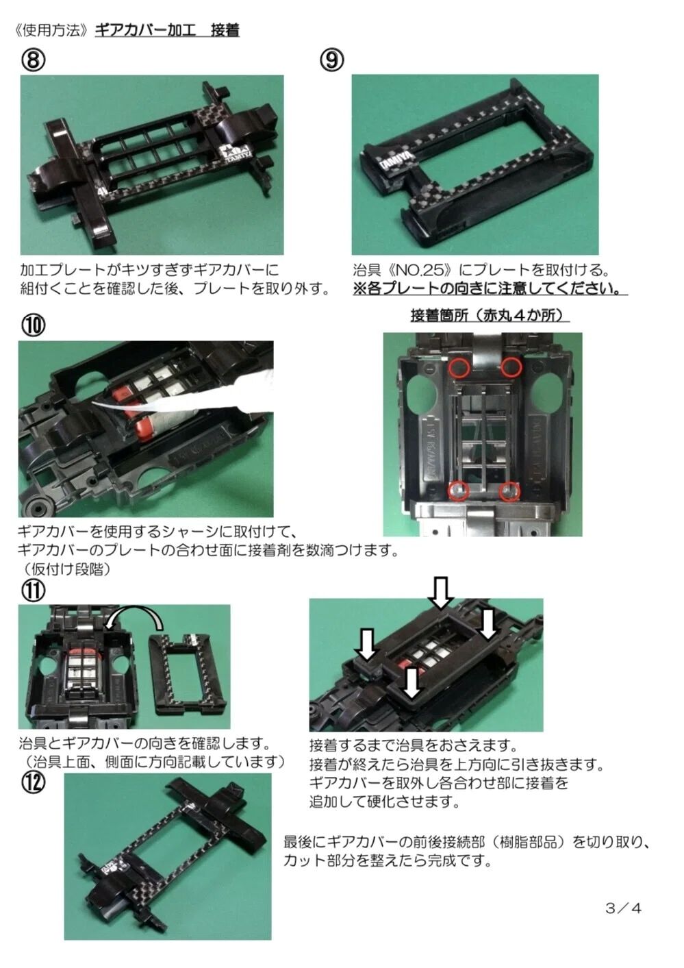 ノーマルギアカバーに比べて約1.5倍ピッチ(上下)方向の曲げ剛性が向上し、ギアカバー破損(爪折れ)を抑えられます。またセンターシャーシ本体の剛性が向上し、フレキ機構の破損トラブルを防ぐことができます。