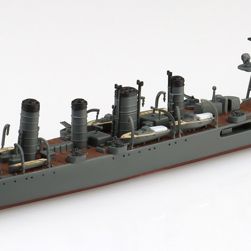14隻の5500トン級軽巡洋艦の一隻として建造。姉妹艦ともども4本煙突が特徴的な川内型軽巡洋艦3番艦「那珂」を1/700スケールのプラスチックモデルキット化。要点を抑えたパーツ構成で、シンプルで組み立て易く、かつ的確に再現できます。機銃や探照灯など各種艤装を新設計で追加しました。1/700スケールの精密感や緻密さをうまく表現しています。