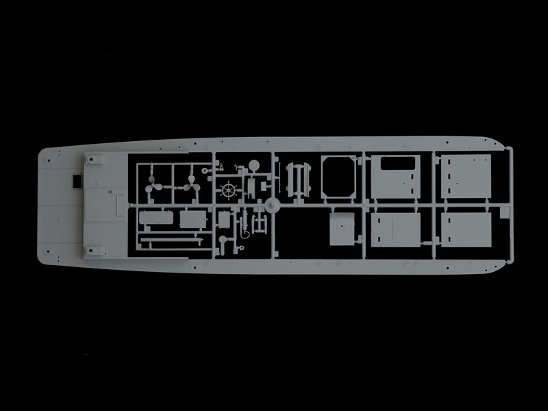 第二次世界大戦中、アンツィオ上陸作戦やノルマンディー上陸作戦などで活躍したアメリカ軍の上陸用舟艇「LCM 3」をモデル化したプラスチックモデル組み立てキットです。車輌や人員搭載用の大きな荷室を設け、平らな船底を持つ独特の形状を実感たっぷりに再現。船首に設けられた上陸用ランプは開閉選択式。3体の人形と4種類の新しいスライドマークが付属。全長435mm。