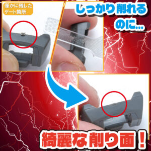 既存の「プラモのためのガラスヤスリ」同様の切削能力と研磨能力を持ちながら、より多彩な用途にも使用しやすくなりました。