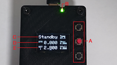 ※充放電中、目標電圧を変更したくなった場合は、中央のボタンを長押しして充放電を中止してください。