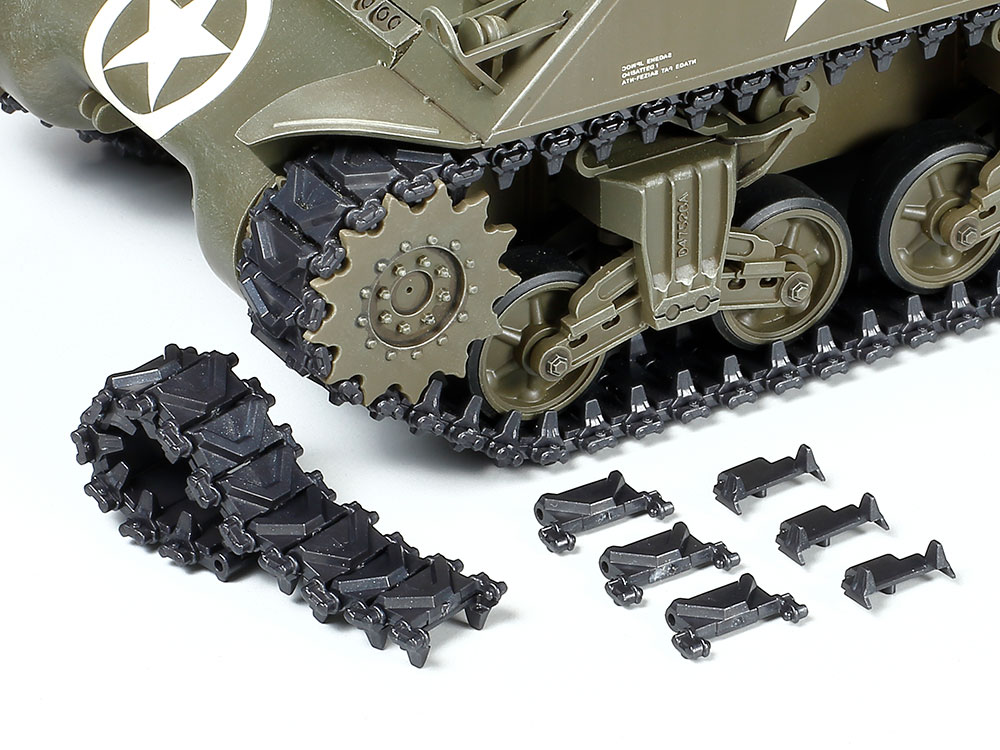 【 指先で動かすアメリカ戦車の代名詞 】 第二次大戦中、アメリカ軍をはじめ連合軍全体の主力戦車として、勝利の原動力となったM4シャーマンシリーズ。その中でも、450馬力を発揮するV型8気筒ガソリンエンジンを搭載して信頼性を高めた、M4A3シャーマンを再現したラジオコントロールタンクの組み立てキットです。1/35サイズにRCメカを凝縮して、前後進、緩旋回、超信地旋回に加え、砲塔旋回や砲身の上下動など、戦車ならではのアクションがプロポの操作で自由自在。重量感たっぷりの動きを生み出す連結組み立て式履帯も注目です。もちろん、実感あふれるプロポーションとシャープなディテールはミリタリーミニチュアシリーズゆずり。スケールモデル感覚でウェザリングや改造も楽しめます。