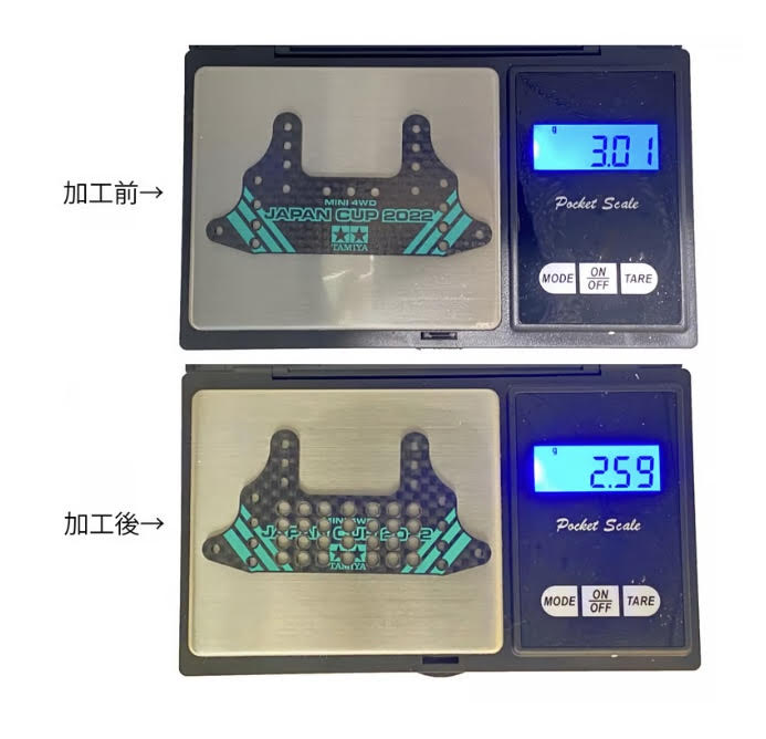 ●治具通りに穴を全てあけると約14%の軽量化ができます。(写真3)