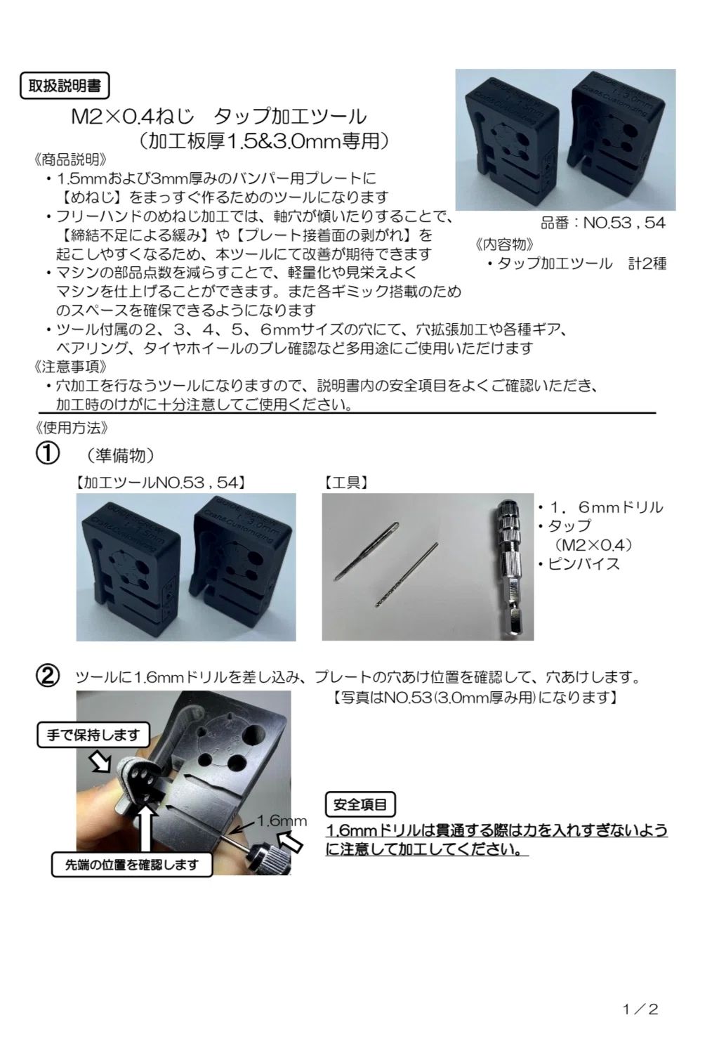 22M64 M2×0.4ねじ用 タップ加工ツール (加工板厚1.5〜3.0mm専用)No53.54