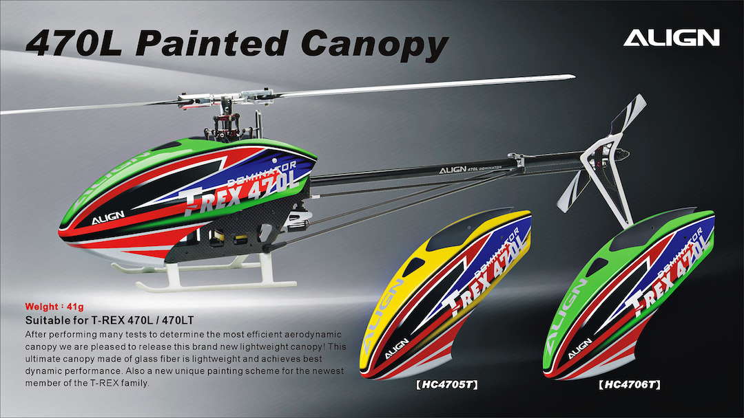 ●After performing many tests to determine the most efficient aerodynamic canopy we are pleased to release this brand new lightweight canopy! This ultimate canopy made of glass fiber is lightweight and achieves best dinamic performance. Also a new unique painting scheme for the newest member of the T-REX family. ●GF painted canopy x 1