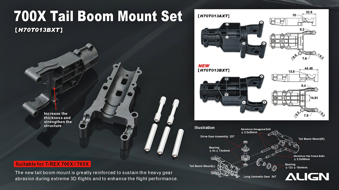 H70T013BXW 700X/700XN/760Xテールブームマウントセット