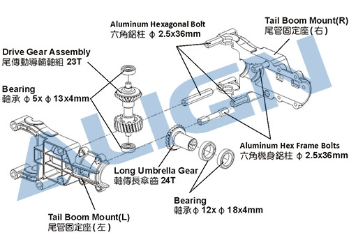 ●新しいテールブームマウントは、極端な3D飛行中に重いギア摩耗を維持し、飛行性能を高めるために大幅に強化されています。