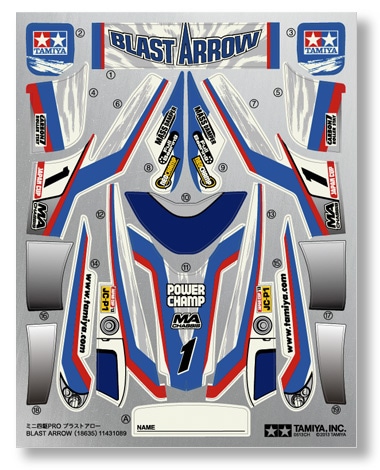 ダブルシャフトモーターが特長のミニ四駆PROシリーズに、新シャーシ「MA」を採用したブラストアローが登場です。駆動効率を追求し、組み立てやすさも考えたシンプルな一体構造シャーシが特徴。さらに、空気抵抗を少なく、各部の冷却も考え抜かれたエアロデザインとしました。ボディはルマン24時間レースなどを走る、実車のプロトタイプレーシングカーをイメージ。実車ムードを高めるローハイトタイヤ&フィンタイプのホワイトホイールが足元を引き締めています。また、ボディに映えるレッド&ブルーのカラーリングは 専用のメタリック調ステッカーで手軽に再現できます。