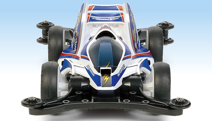 基本性能の高さでRCファンの人気を集めた電動RC・4WDレーシングバギー、サンダーショットをベースに誕生したレーサーミニ四駆のサンダーショットJr.。大型のキャノピーを採用し、リヤウイング翼端板がボディと一体化したコンパクトで空気抵抗の少ないビュレットフォルムが特長。このビュレットフォルムを受け継ぎ、空気の流れを最大限に利用して各部の冷却まで考えられたマシンがエアロ サンダーショットです。