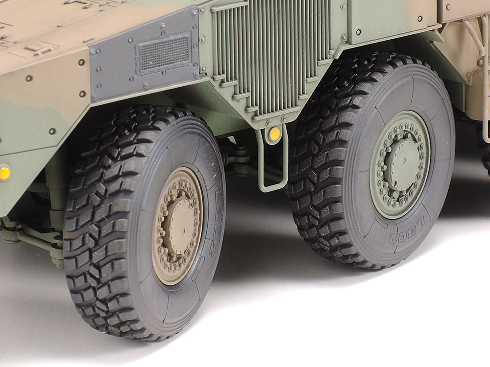 ●実車取材により、8輪の大径タイヤを持つ車体に105mm砲を装備した精悍な姿を実感豊かにモデル化。