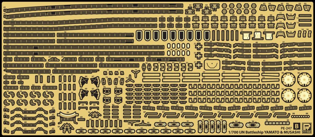・エッチングパーツ2枚+木製甲板+金属挽物砲身(主砲身9本+副砲身12本)