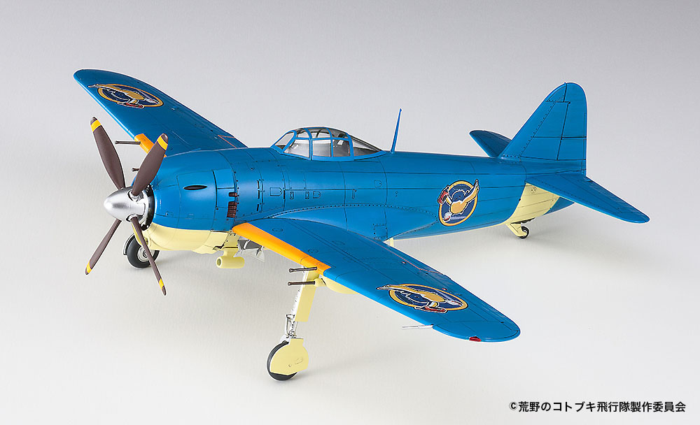 TVアニメ いよいよスタート! 西部劇テイストで描かれる、空戦アクション「コトブキ飛行隊」より、 用心棒部隊 ナサリン飛行隊の紫電をキット化! メンバーのアドルフォがアクリルスタンドフィギュアで付属!