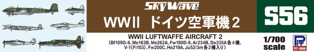 ・Bf109G-6 戦闘機、Me163 ロケット戦闘機、Me262A ジェット戦闘機、Fw190D-9 戦闘機、Do335A 戦闘機、Ar234B ジェット爆撃機 各4機入り