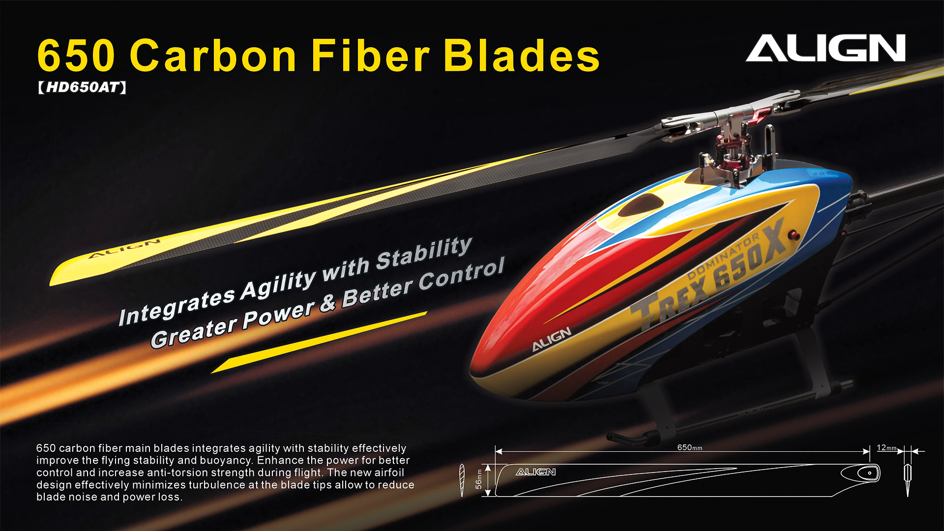 HD650A 650 カーボンファイバーブレード-イエロー