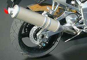 ワインディングロードをもっとも得意とするという、これまでのリッターバイクの常識をくつがえす新世代のスーパースポーツマシン、ヤマハYZF-R1。その高性能ゆえにバイクショップなどから多くのパーツが販売され、走る楽しみを広げています。その中から元全日本500ccチャンピオンである平忠彦氏が代表を務めるタイラレーシング製のパーツを装着したマシンをモデル化。乗りやすさを追求しながら中高速域のパワーアップを実現したチタニウム製サイレンサーを始め、後輪に沿うようにRをつけたカーボン製リヤフェンダー、穴開け加工されたアルミ製スプロケットなど、グランプリライダーの経験を生かしたパーツはどれも高精度かつ高品質。走りにさらなる磨きをかけ、多くのファンから高い信頼を集めています。