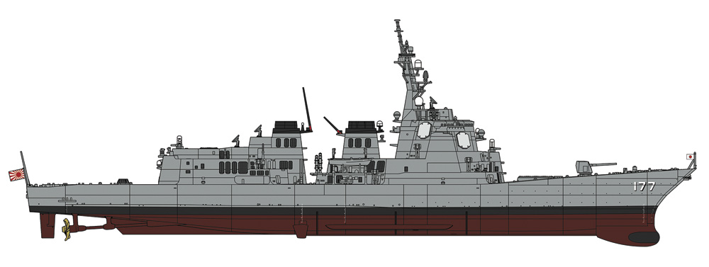 レジン部品 SPQ-9B対水上レーダーアンテナ 曳航(えいこう)ソナーSQR-20 MFTA 救命いかだ架台脇に追加した救命浮標自動投下装置(左右1つずつ) 製品仕様 イージスシステム搭載のミサイル護衛艦 あたご「177」