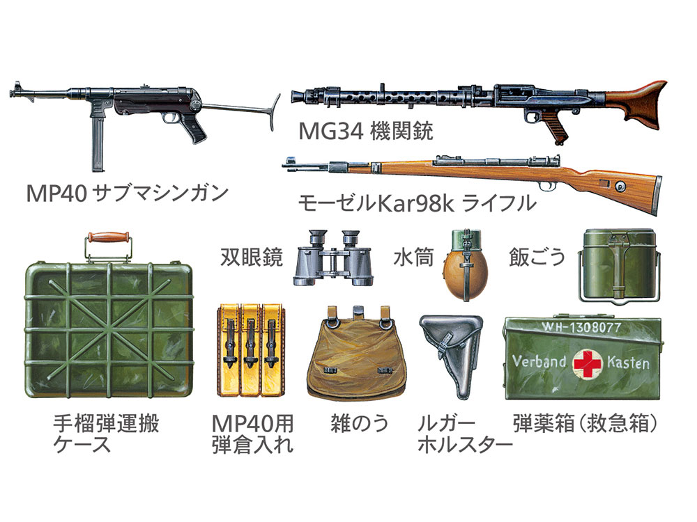 ★Kar98kライフルやMG34機関銃、MP40短機関銃のディテールもシャープな仕上がり。