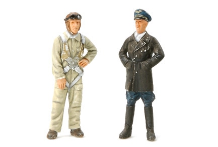 ●人形はパイロットと将校の立ち姿2体をセット。パイロットの頭部は飛行帽と将校帽を選べます。着座姿勢のパイロットも用意。