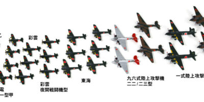 緒戦で活躍した九六式、一式陸攻の他、紫電、彩雲、東海をセットにしました。