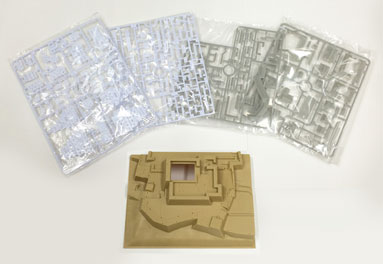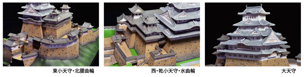 スケールは1/500、パーツ数130、205㎜×155㎜のコンパクトなベースに姫路城をリアルにモデル化しています。