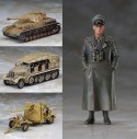 イギリス軍に畏敬の念を込めて呼ばれた「砂漠のキツネ」の異名で知られる エルヴィン ロンメル将軍率いるドイツアフリカ軍団の車両と火砲のセット。 1/32メタル製ロンメルフィギュアが付属します。