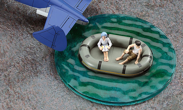 コクピットに搭乗可能な着座姿勢のシャルル&ファナに加え、劇中のシーンをイメージした、ゴムボート&休息する二 人をセット。