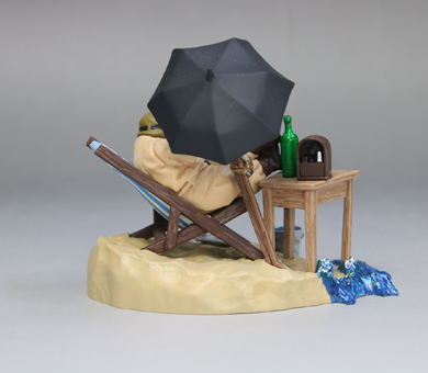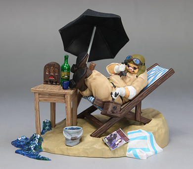 ・見本 本体はゴーグル、サングラス、鼻、ヒゲはデカールにて再現可能。 情景は椅子のストライプ、雑誌、ビンのラベルなどもデ カールです。