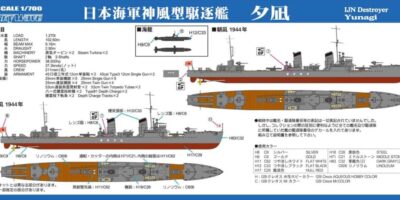 神風型駆逐艦は前級峯風型後期の改良版として9隻が建造されました。 最終艦夕凪は1925年(大正14年)4月、佐世保工廠にて竣工。第6水雷戦隊第29駆逐隊に所属し、開戦後はサラモア戦や第一次ソロモン海戦等で奮戦するも、1944年(昭和19年)8月25日、ルソン島北西岸にて、アメリカ海軍潜水艦ピクコダの雷撃を受け、沈没しました。