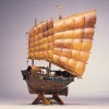 中国の古い帆船のことを“ジャンク”と言います。西洋の船のようにキールがなく、二重三重に側板が貼られ、浅瀬での航行に優れていました。竹を使った帆柱が特徴で河川や沿岸域、または、交易船として外洋まで進出していきました。キットは一般的にイメージの強いスタイルを商品化しております。