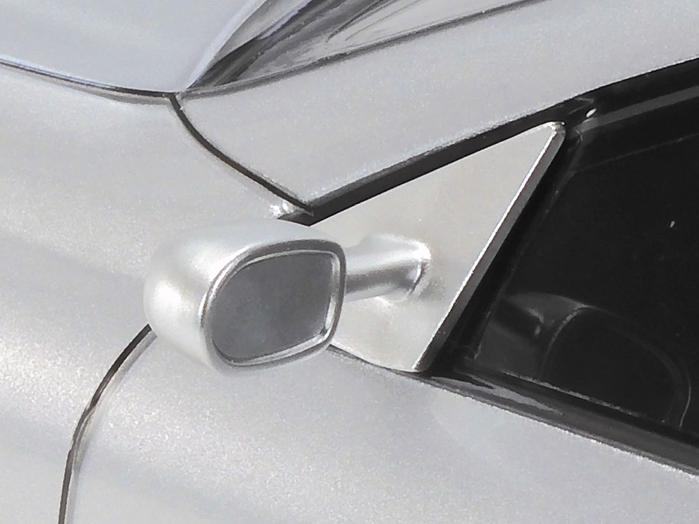 メルセデス・ベンツの2ドアクーペ、CLKには、同社のスポーツモデルを手がけるAMGが開発したレーシングモデルもありました。鋼管スペースフレームとカーボンファイバーで構成された軽量な車体に、470馬力を発揮する4リッターV8エンジンを搭載。6速シーケンシャルミッションを介して後輪を駆動します。2002年のDTM(ドイツツーリングカー選手権)では見事にチームタイトルを獲得。輝かしい成績を残したこのツーリングカーレース用のベースマシンをイメージした電動ラジオコントロールカー組み立てキットです。流麗な2ドアクーペの面影を残しながらも、ワイドなタイヤを収めるために拡大された前後のフェンダーやサイドシルスポイラー、大型リヤウイングなどを装備した迫力みなぎるスタイルをポリカーボネートで実感たっぷりにモデル化。ボディはシルバー、ウインドウはスモークで塗装済みとし、ホイールアーチのカットや、ボディキャッチの穴開け加工も施しました。