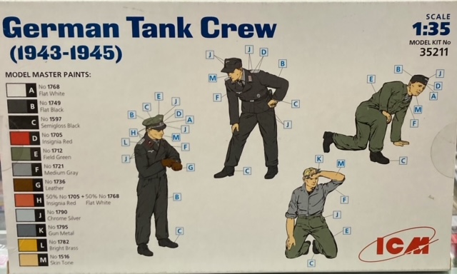 キットには、第二次世界大戦後期のドイツ戦車部隊の士官 2 名と整備士 2 名の計 4 体のフィギュアが含まれています。