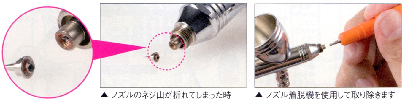 ノズル着脱器を使用してもうまく取り出せない場合は、ネジ山がつぶれたりする原因となりますので、弊社オーバーホールサービスをご利用ください。