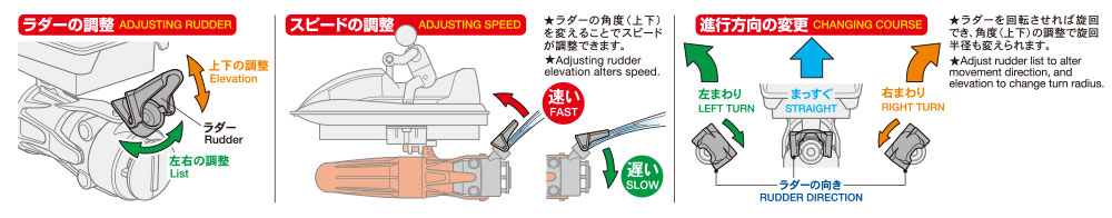 【 遠心ポンプで水を吹き出しながら進みます! 】 マリンスポーツとして人気の高い水上バイクをイメージした工作セットです。水中モーターの後部に遠心ポンプを装備して、水を吹き出しながら進みます。遠心ポンプ内部のインペラ(羽根車)が回転することで、中心から取り込んだ水が、遠心力で加速されてラダーから噴き出します。ラダーは上下に動かせばスピードが調整ができ、左右に回転させれば進む方向が変えられます。水上バイクはフロートやライダーも含めて6点のパーツで構成。2種類のマーキング用ステッカーもセットしました。また、遠心ポンプと水中モーターの動力ユニットは、付属の吸着盤を使って他の工作に取り付けることも可能です。