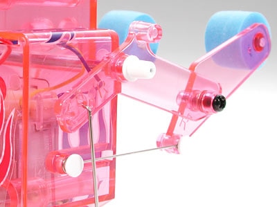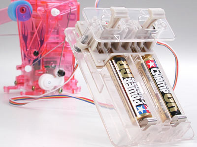 【 バトルゲームを楽しもう 】 すばやいパンチを出しながら動き回る、組み立て式のボクサーロボットを2体セットして、対戦ゲームが楽しめます。ロボットははめ込み、ビス止めだけで完成、モーターはリモコン基板に配線ずみですから手軽に組み立てられます。また、クリヤーボディですから、モーターの回転を足となるグリップ部品に伝えてその動きをリンクロッドで腕に伝えるメカニズム、攻撃ポイントにパンチが当たるとジャッジプレートが倒れるしくみも楽しく観察できます。