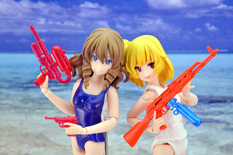 リアルさと可動フィギュアとの組み合わせを両立した1/12スケール組み立てキット「リトルアーモリー」。この夏のアイテムとして、派手なカラーリングで「水鉄砲セット」の新作をリリース。夏らしいフィギュア撮影が捗るアイテムです!