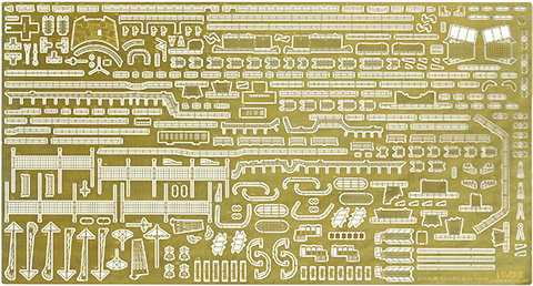 製品は艦底まで再現できるフルハル仕様で、完成後に飾って楽しめる台座が付属します。 艦体下部は一体成型のパーツ構成でスクリュー部、舵を別パーツ化しています。 25ミリ機銃(3連装/連装/単装)はキット付属パーツ以外に、銃身と銃架を別パーツ化した精密機銃パーツをあらたに収録。 九六式25ミリ機銃は2ピース構成で、砲身のガンメタルと基部の艦体色を塗り分け再現が容易にできるようにしています。 艦載機の成型色は作業性を考慮しクリアーからグレーへ変更しました。 艦載機の日の丸や甲板上の白線、国旗などを収録したデカールが付属。 インジェクションパーツでは再現の難しい細部に至るまで細密に表現できるエッチングパーツを収録。 エッチングパーツは手摺、艦橋窓枠、ダビット、信号灯などを収録。