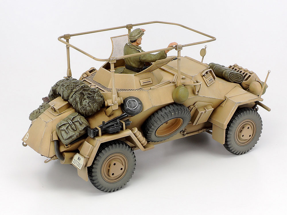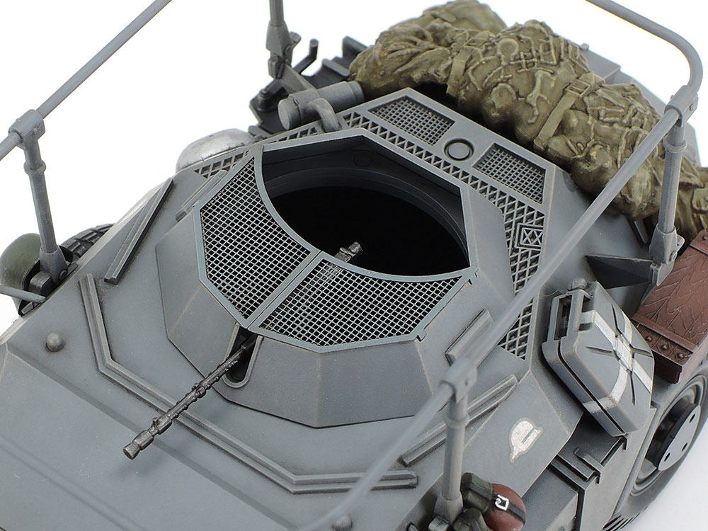★複雑な足まわりや車体下面も実感豊かにモデル化。ジェリカンやカモフラージュネットなどのアクセサリーを豊富にセット。乗員の人形2体付き。