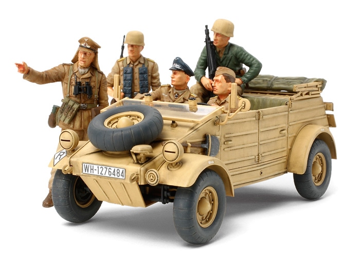 【 模型要目 】 アフリカ仕様のキューベルワーゲンにラムケ降下旅団の兵士達をセットしたプラスチックモデル組立てキットです。