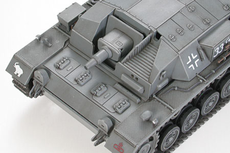 【 手に重み、重量感はダイキャストシャーシが演出するリアリティー 】 1/48ミリタリーミニチュアのIII号突撃砲もシャーシにダイキャストパーツを採用。完成時の重量感、金属の持つ質感が実感を演出します。しかも、サスペンションアームが一体で強度も十分。さらに、サーフェイサーで下地仕上げ済みですから組み立て時の塗装もそのまま作業していただけます。完成してからも手に持って眺める楽しみがその質感と重量感でいっそう高まることでしょう。