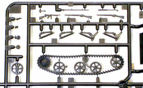 ● キャタピラはホイールを含め一体でパーツ化。別パーツのコイルスプリングと組み合わせて仕上がりは密度感たっぷり。