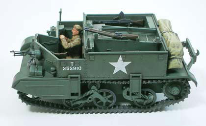 【 イギリス・ブレンガンキャリヤーMk.IIについて 】 第二次大戦中、イギリス軍はキャタピラ式の小型兵員輸送車を多用しました。その代表的なタイプがブレンガンキャリヤーMk.IIです。主武装としてブレン軽機関銃を装備、1942年に配備が開始され、北アフリカ戦線やイタリア戦線、ノルマンディー上陸以降のヨーロッパ戦線において幅広い任務に使用されました。特に自動車化歩兵大隊などに配備されたブレンガンキャリヤーMk.IIは、優れた機動性を活かして主力戦車と共にイギリス軍の先陣を切って進撃したのです。