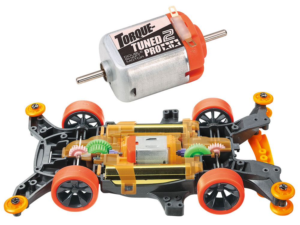 【 基本スペック 】 ●完成時の全長156mm ●全幅97mm ●全高44mm ●トルクチューン2モーターPRO付き ●組み立ては接着剤不要のはめ込み式。