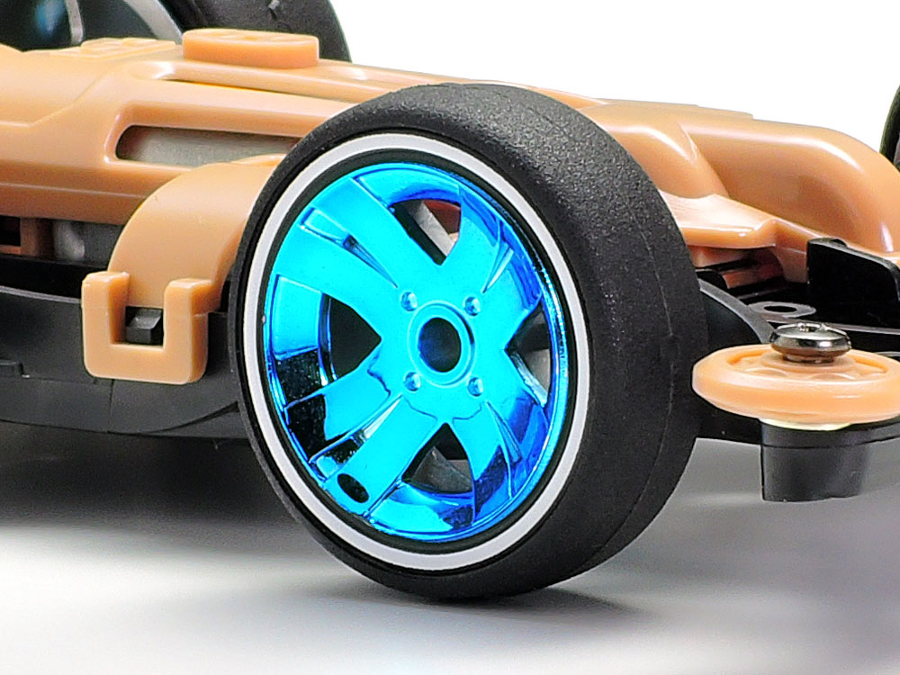 【 駆動効率を追求したMAシャーシ 】 “MA”とは、Midship AERO(ミドシップエアロ)の略。ダブルシャフトモーターを車体中央に搭載したミドシップレイアウトの「MSシャーシ」と、走行中の気流(エアロ)を特に意識してデザインされた「ARシャーシ」。それぞれの優れた特徴を1台のシャーシにまとめあげたのが「MAシャーシ」です。もちろん、これまでに蓄積されたレーシングノウハウをいかして、4:1のギヤ比、6個の低摩擦樹脂ローラー、リヤスキッドバーを標準装備するなど、走行性能も徹底的に磨き上げました。加えて、一体型のモノコック構造の採用で組み立てやすさやメンテナンス性もアップ。初心者からベテランレーサーまで、また、小さめのコースで行われる街かどレースから大型の特設5レーンサーキットの公認競技会まで、幅広く対応できるシャーシです。