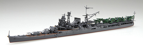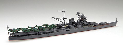 後部甲板を撤去し航空甲板を設置したことで、機体後部には水上機11機を搭載可能になり、対空防御力も増強されました。キットは昭和19年の姿を再現しました。