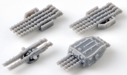日本海軍の代表的な魚雷発射管のセット。九二式四連装発射管(シールド付/無の選択式)と八年式連装発射管を立体化。 駆逐艦・軽巡・重巡まで多くの艦に対応。各4基入。