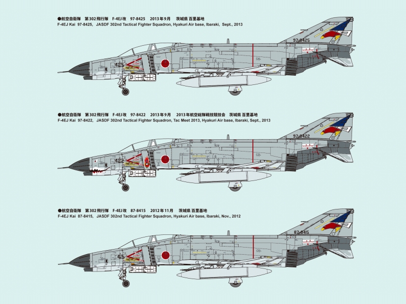 第302飛行隊は北海道にて発足したことから、尾翼には道内北東部で生息するオジロワシを「三〇二」の3文字をデザイン化した組み合わせにより描いています。 自衛隊航空機の中でも一番大きなマークと共に2013年にシャークティースを機首に描いたスペシャルマーキング機を再現します。合わせてパイロットフィギュアを2体セットします。 金型設計・製造はタミヤ製、成形は弊社のナノ・アヴィエーションシリーズを量産する成形機で行っています。