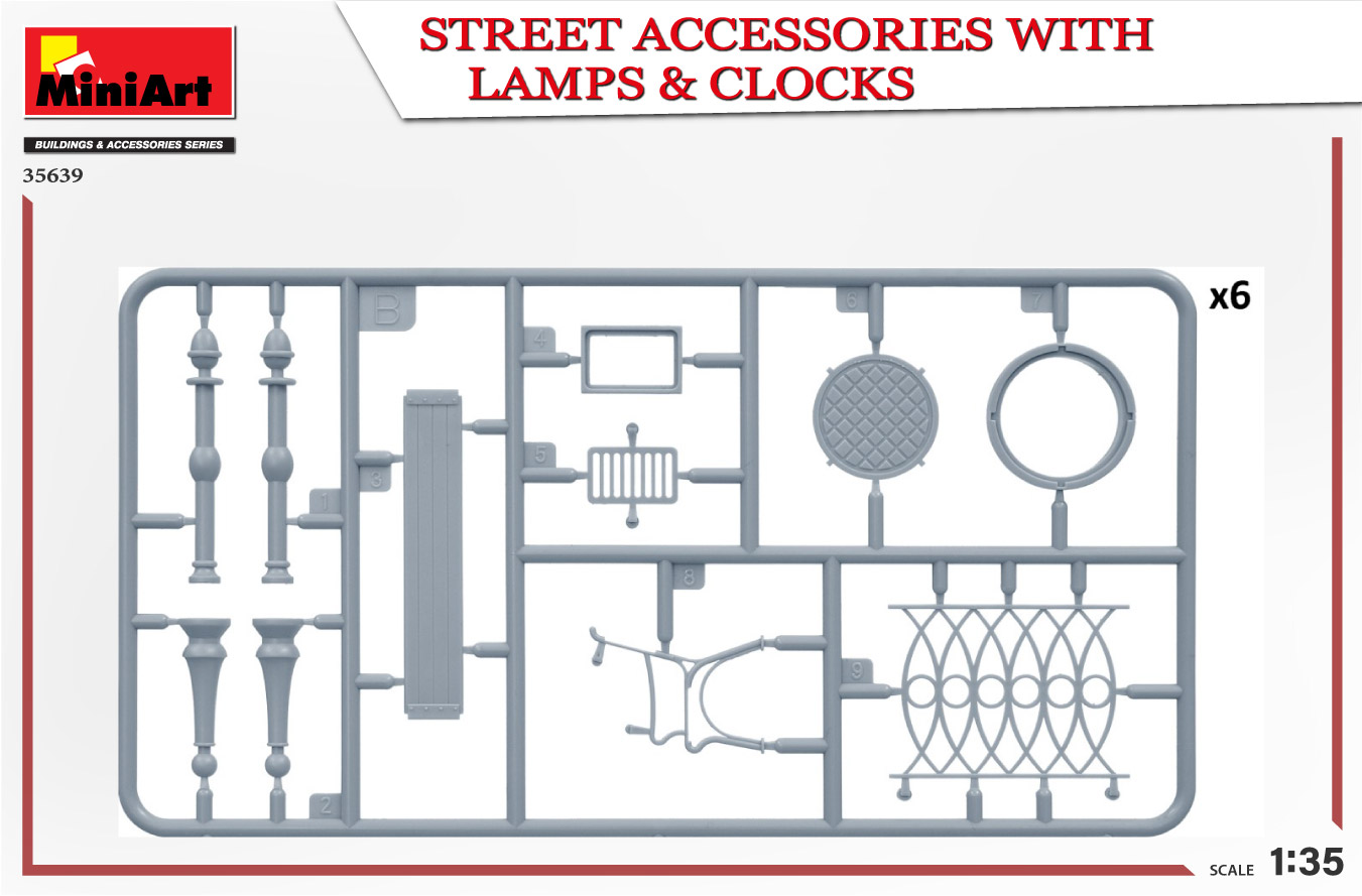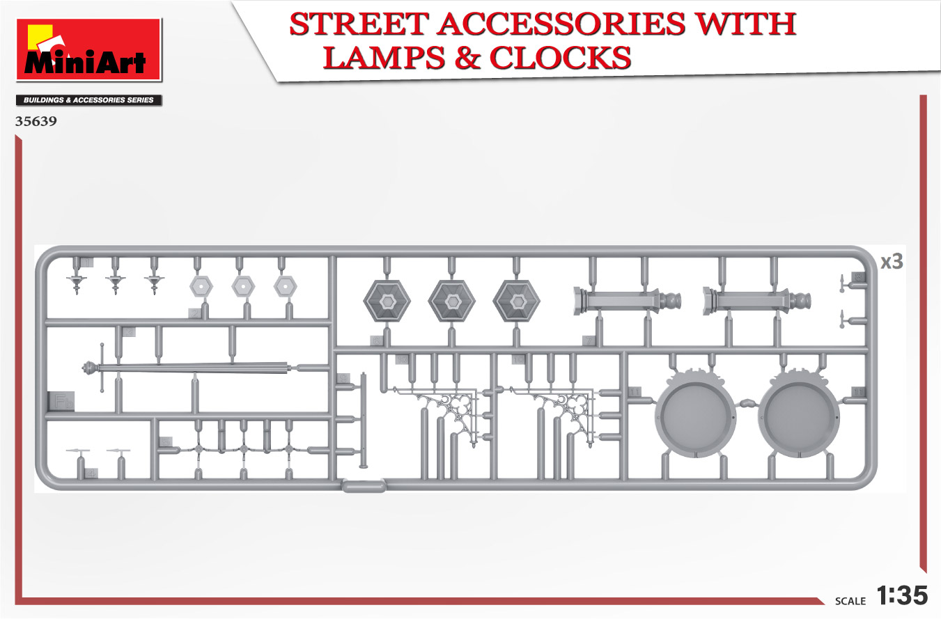 ミニアート 35639 路上のアクセサリーと街灯/時計台