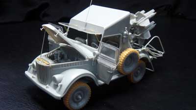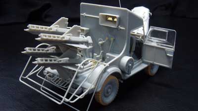 2P26では 荷台後部に移動状態では垂直に4連装ランチャーが立てられ幌で覆 われていました。
