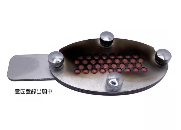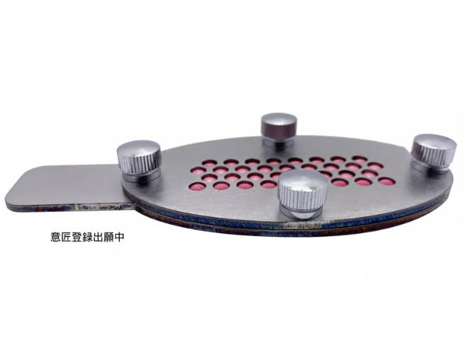 ●穴の開いたプレートに熱を加えることでブレーキを穴の形状に成形することが出来ます。